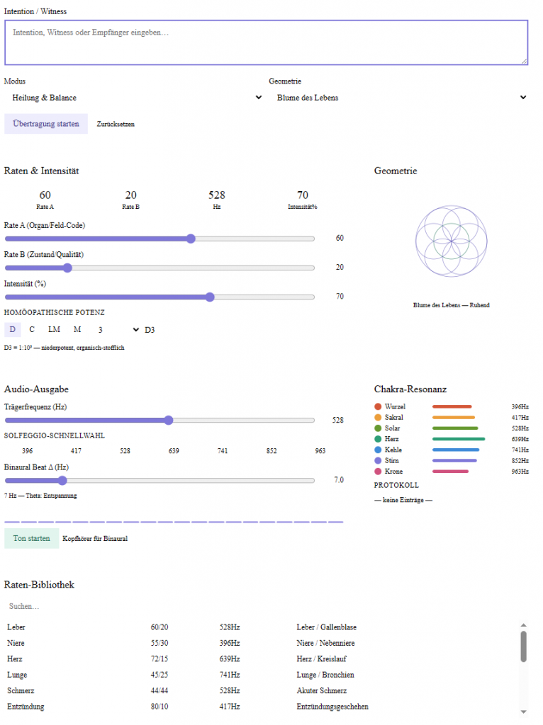 Radionische Harmonisierung (Dauer 3:03 Minuten) mit Sound